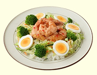 愛知県の皆さんにもっと野菜を食べていただくために2018年に誕生したのが、「あいちサラダめし」。愛知らしい食材や食文化を活かし、たっぷりの野菜にたまごをプラスして、マヨネーズやドレッシングで仕上げます。サラダを主食として食べられるワンボウルスタイルで、ボリューム感もあり、健康や栄養面にも配慮しています。