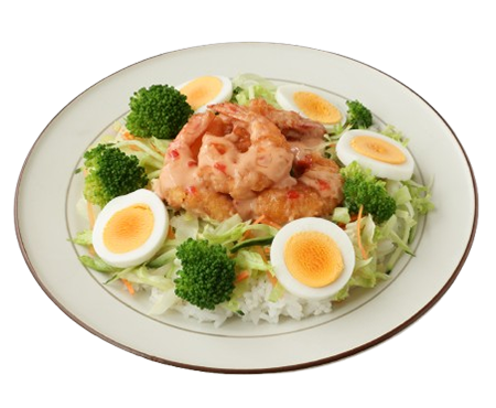 名古屋名物・エビフライを使用した食べ応え満点のあいちサラダめし。愛知県で生産量の多いブロッコリーを 加えて、彩りも鮮やかに!
