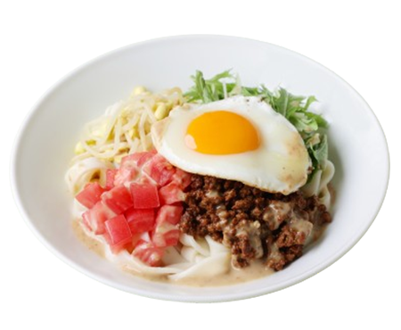 きしめん、豆みそ、愛知県で生産量の多いトマトを使用。担々味とまろやかなごまドレッシングのハーモニーが◎。
