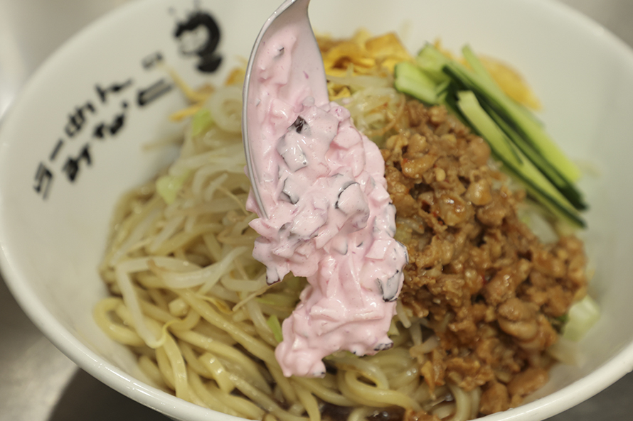 「そんなうちの2大看板である『八丁みそを使った自家製甜面醤肉みそ』と『ピンクタルタル』を一緒に味わってみたら、とってもおいしくて!今回のサラダめしに採用しました。ぜひ、最初はそれぞれのソースと麺や野菜を一緒に味わい、後半はすべてを混ぜ合わせて一体になった味を楽しんでください」(小林さん)